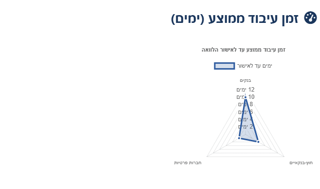 תובנה: הגופים החוץ-בנקאיים מהירים ב-60% מבנקים, מה שמסביר את המשיכה שלהם ללווים הזקוקים למימון דחוף.